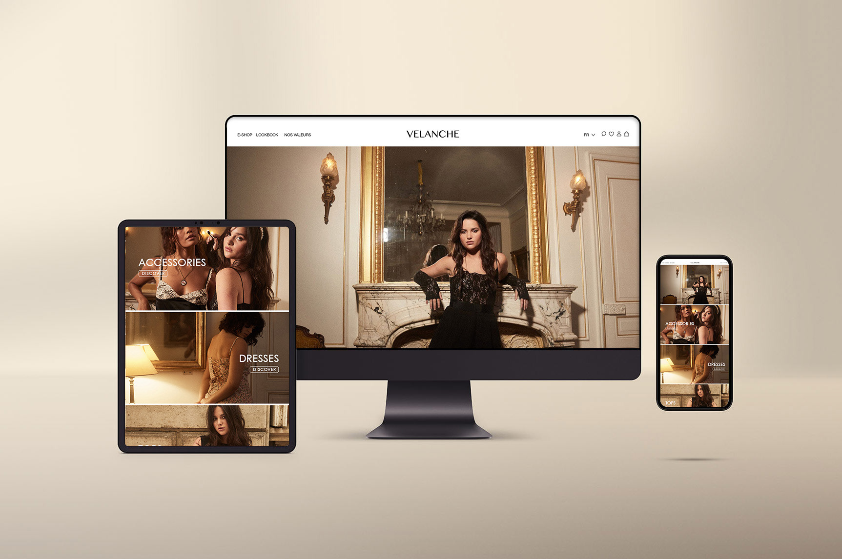 Graphisme & Identité visuelle pour le lancement de la marque Velanche. Site internet, newsletters, lookbook, étiquettes, packs etc..